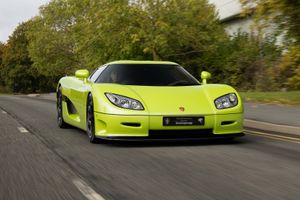 Debuting at the March 2004 Geneva Motor Show, the CCR was the most powerful version of the Koenigsegg CC range cars at the time. Like the CC8S it features dihedral synchro-helix actuation doors. It has, however, various improvements. A larger front splitter for optimized downforce and tweaked headlight arrangement came standard with a rear wing. New larger tires and wheels equipped with larger brakes. Upgraded suspension and a more powerful engine with twin Rotrex Superchargers, producing 601 kW (806 hp; 817 PS) at 6900 rpm and 920 N⋅m (679 lbf⋅ft) of torque at 5700 rpm.